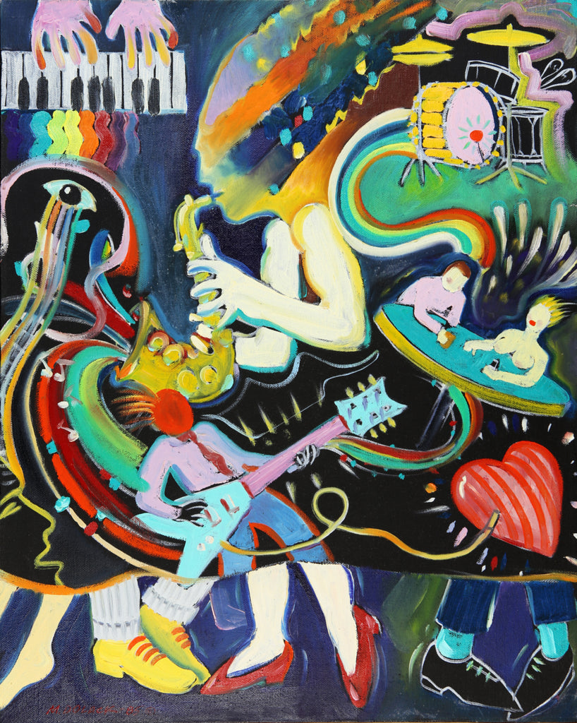 One thing that makes this print unique is the fact that a red halter top has been added to one of the female figures in the print.