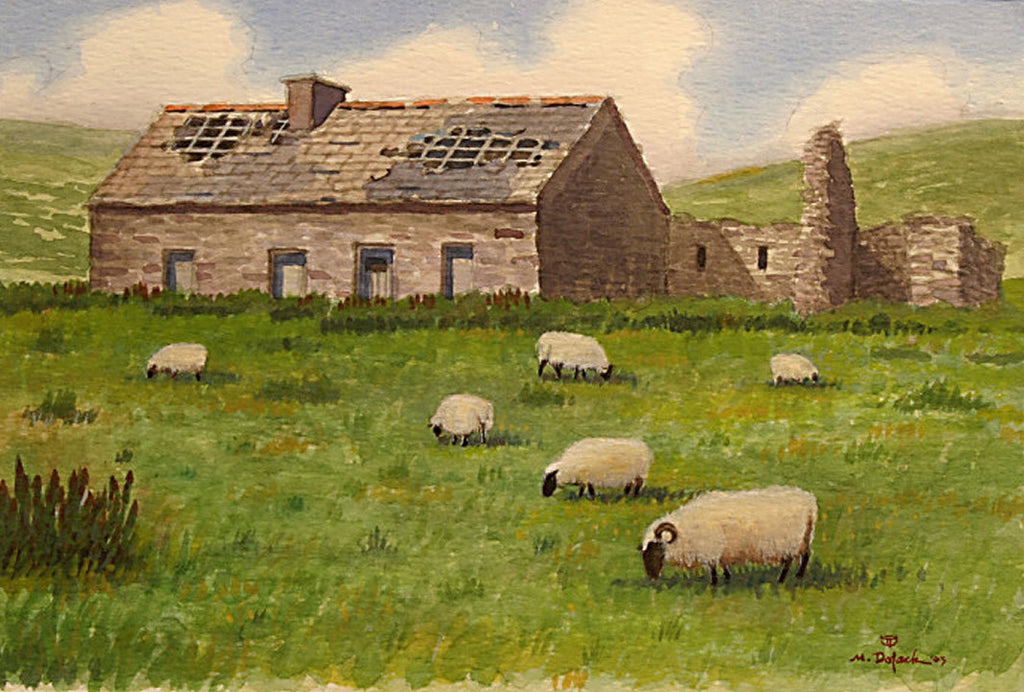 The Famine House, an original watercolor painting on paper, is a part of Monte's Ireland series.